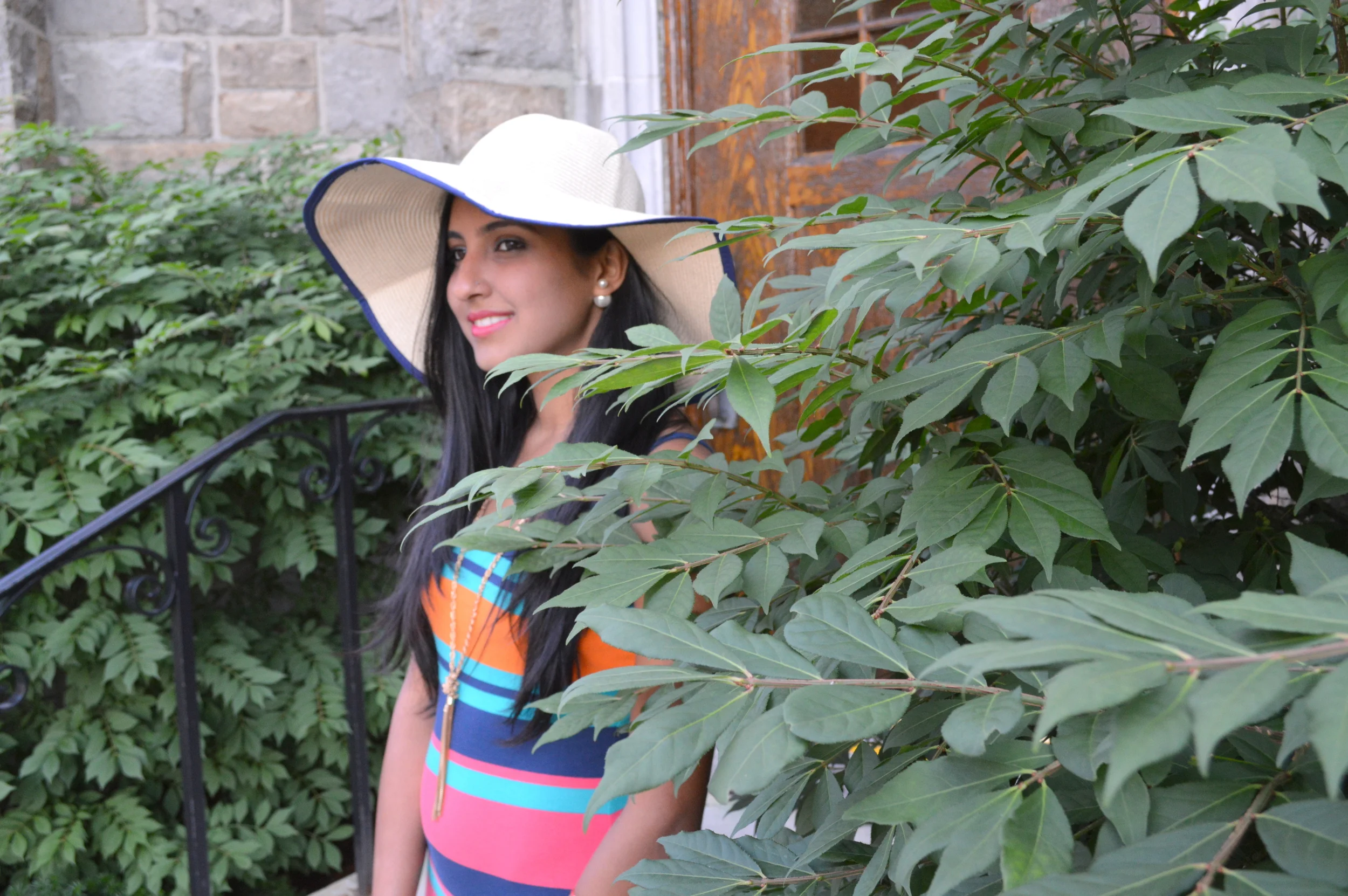 As much as I love the dress, this outfit carries some of my current favorite accessories. The earrings that I just professed my love for surely deserve another mention?! A keepsake from my dear late Grandma, the wicker bag I'm carrying reflects her timeless, classic sense of style (at least some of which I hope to have inherited! Sigh.). This perfect floppy hat (Navy details and a bow? Staaaahp it!)is a gift from a dear friend that knows me and my love for pretty things so well (I miss you, Ann!). So all in all, I must say that this outfit makes me one happy girl!