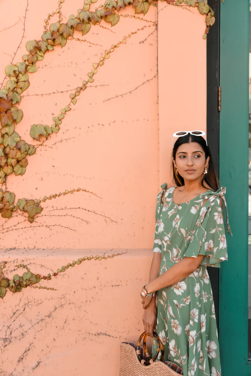 /Happy weekend, friends! Choosing to cavort around your screen in a ladylike look in today’s post, featuring only the most darling floral midi dress I’ve laid hands on all summer.