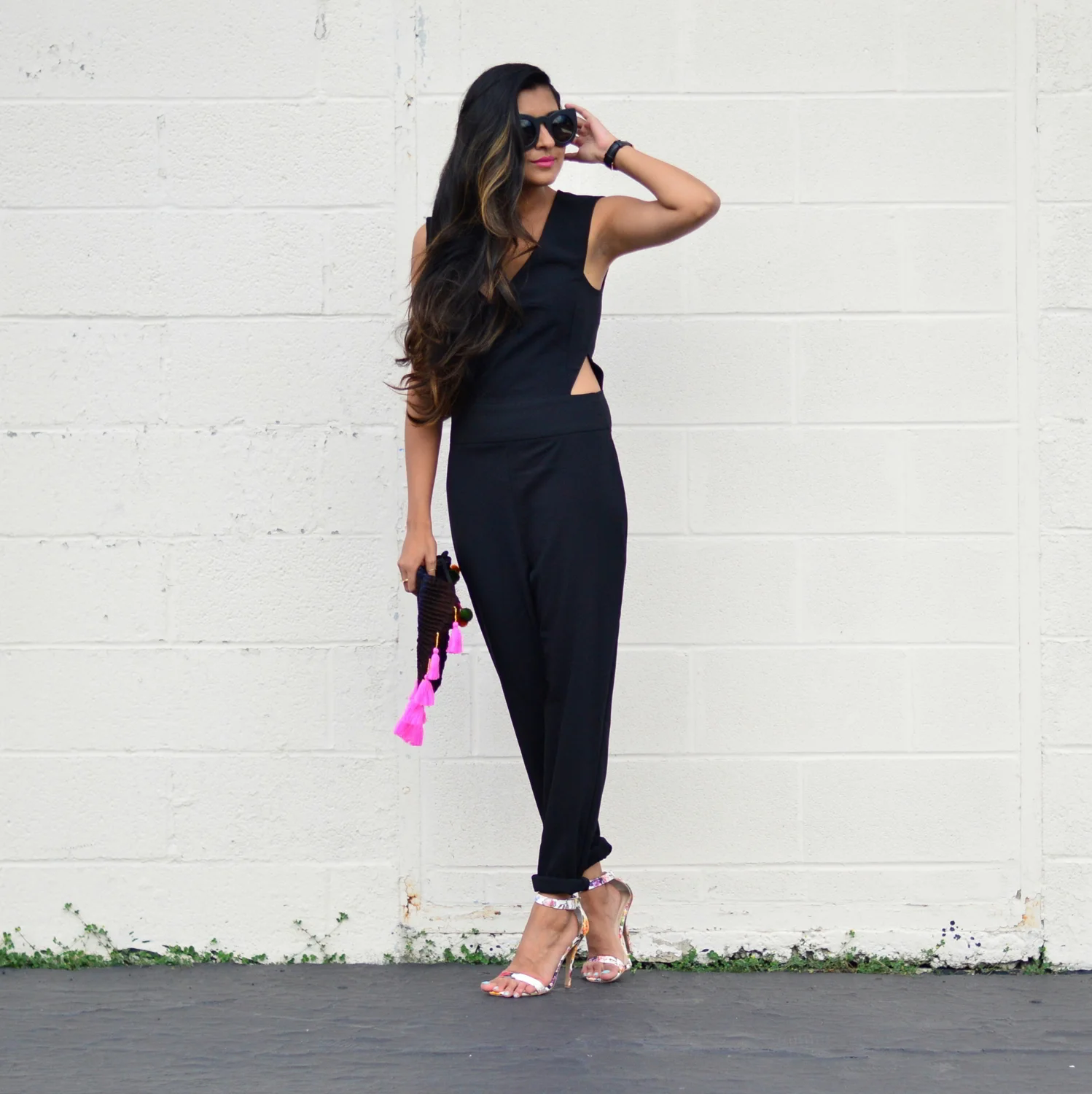 /A quick hello before wrapping up another crazy week! My tryst with neutrals clearly continues unabated, this time in the form of a classic all black jumpsuit. It's got cut-out waist details, flattering tapered pants and a neckline that plunges just enough.. date night done right? ;)