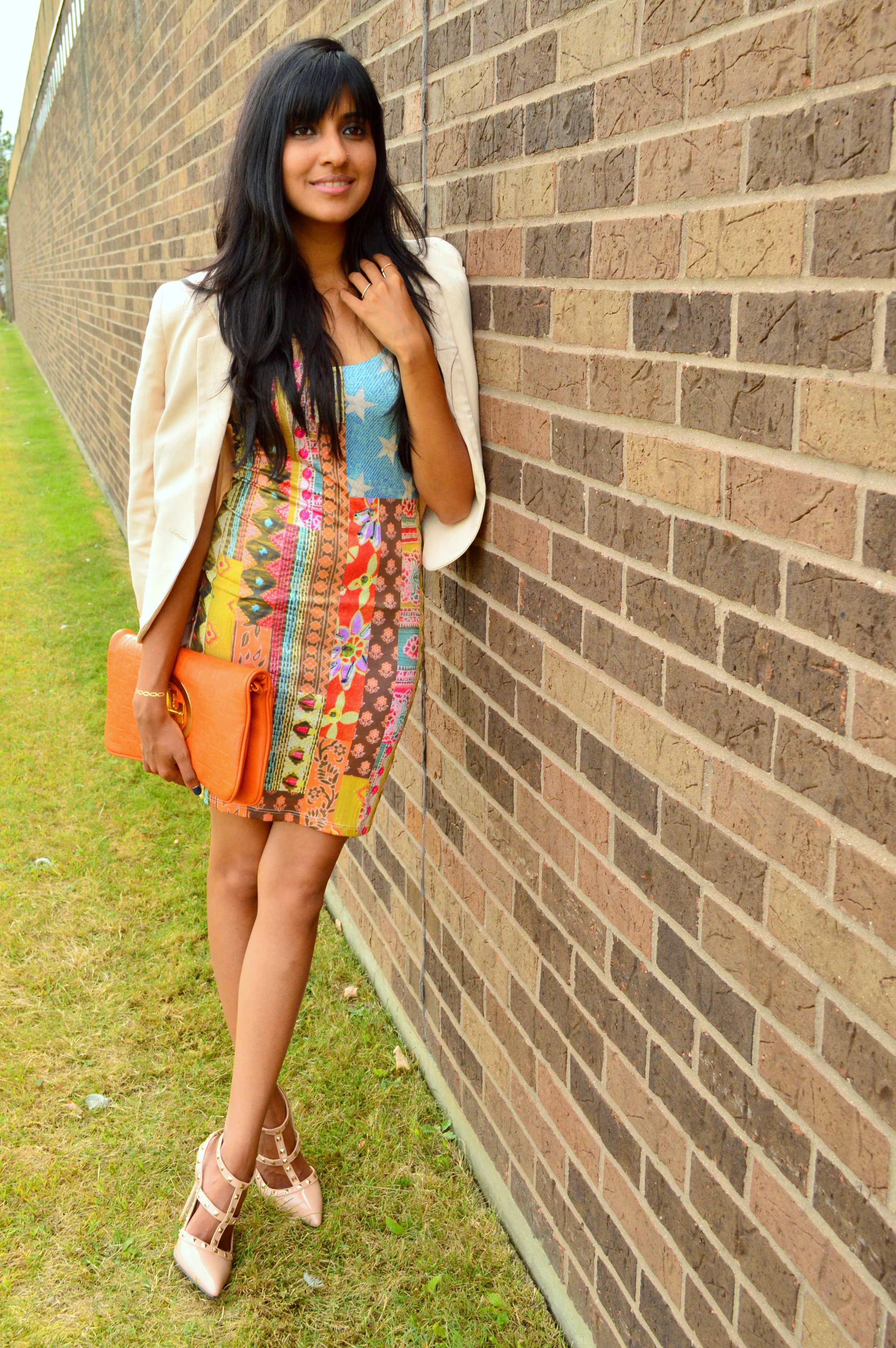 My hair situation aside, I'm sharing my standard simple look for date night as we head into Fall and the nights get progressively cooler. A dress that makes me feel good, a neutral blazer to layer on when it gets cold and a pair of good lookin' heels to turn some heads in! A printed bodycon dress is perfect for so many reasons if you're petite like me. . the stretch hugs your figure to accentuate the shape of the body, while the prints hide small imperfections effortlessly. Needless to say, the dress is easy to wear as a top under a skirt or as a skirt under a top, making it versatile and fun to style in so many different ways.