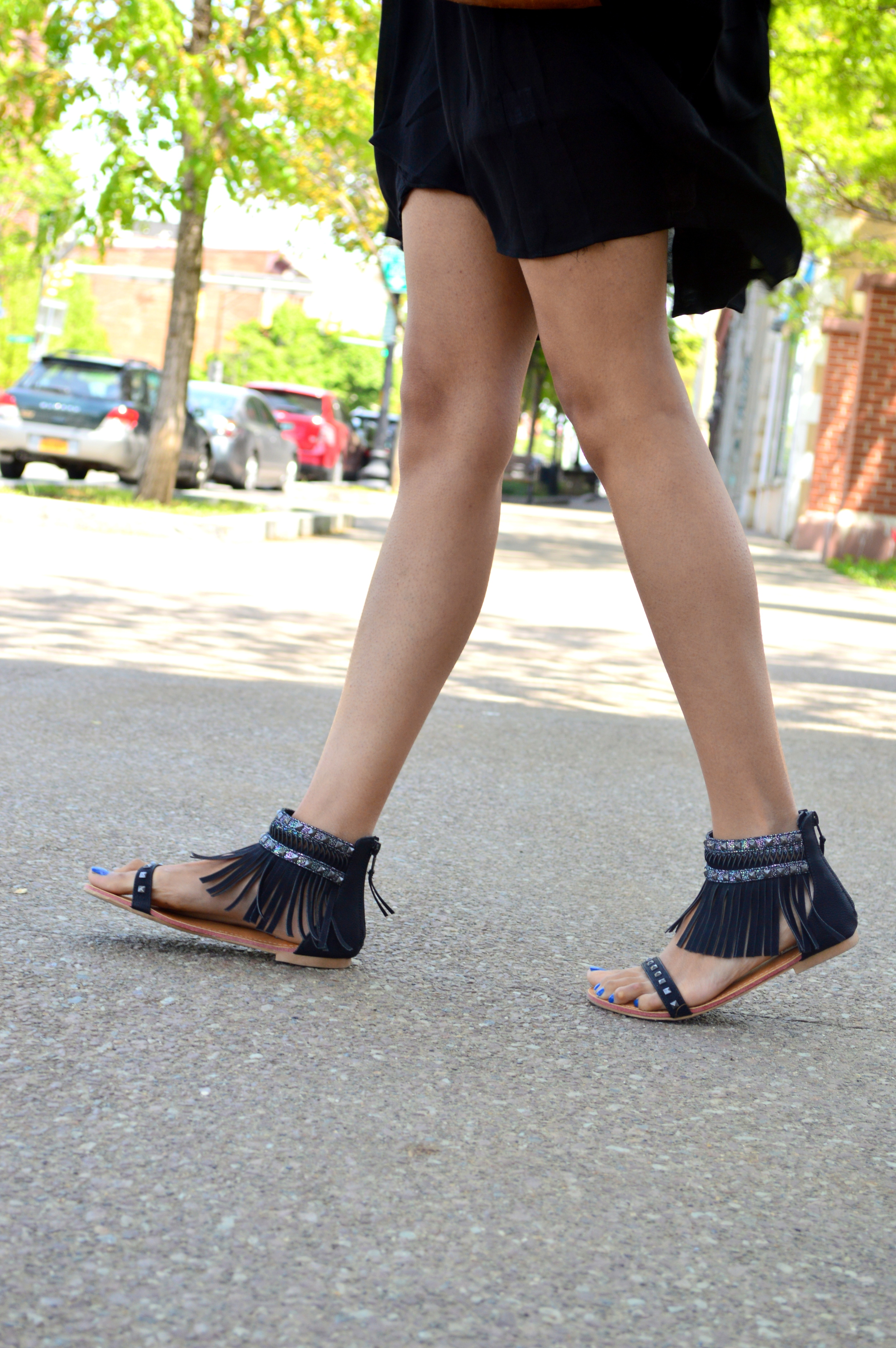 Don't you love when truly utilitarian, comfortable trends make the rounds on the fashion scene? My exact sentiments on the cold shoulder trend: Yes, Please! Similar to the off shoulder style for tops and dresses (see this post), the cold shoulder trend can be worn by the modest and the more daring alike, and I love how comfortable and chic it can be in the hotter months! It was love at first sight with this retro-inspired dress from Blak Label.. the boho sleeves, the tassels and the cool cotton fabric make this one of my current summer favorites. I've also worn fringe before on the blog (see here and here), but if this isn't in your comfort zone, an accessory like the fun sandals I'm wearing here may be the way to go. I'd call this look festival appropriate, but when the boho bug bites, festival or not, you gotta wear what you gotta wear!