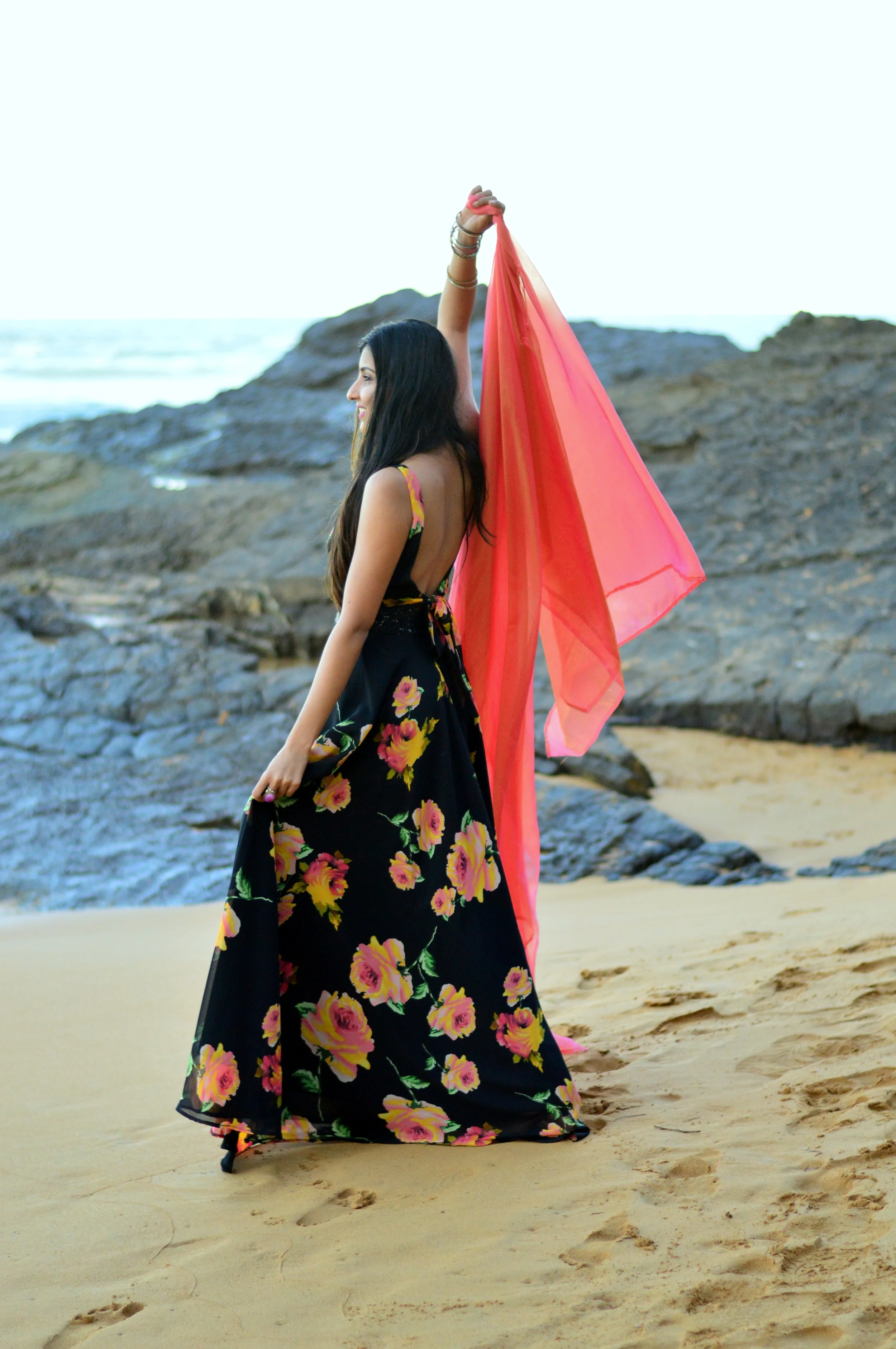 As I watched the skirt ebb and flow with the wind, as if to mimic the waves against the rocks, I felt like my own version of the Little Mermaid, dressed in her finest and headed to the castle with her Prince.. minus the witch and all that subsequent drama, of course. ;) In the world of vivid florals, glittering ocean blues and dreamy sunsets, only happily ever afters exist, right? :)