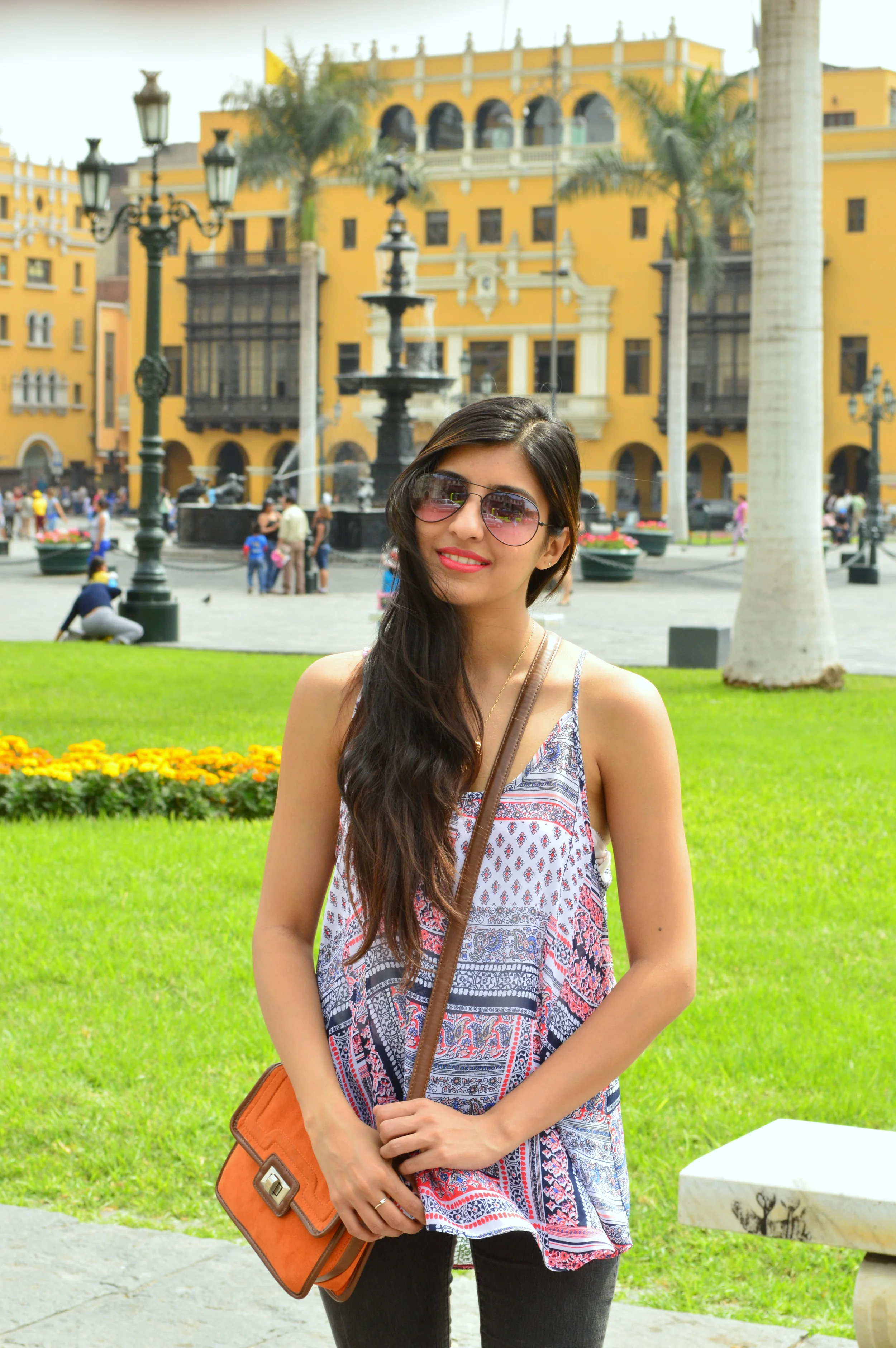 Lima was so hot and humid on both of our days there that even the lightest pieces of clothing seemed like a bit much.. my expectations for this breezy printed tank + ripped jeans combo to keep me cool flew out the door in an instant! My espadrilles powered through a whole day of walking, so atleast my feet were happy, right? ;) We spent a good part of the day wandering in the vibrant Plaza De Armas that makes up the historic city center with it's stunning architecture and charming pastel walled alleys. After some partially successful conversations in broken Spanish in the bustling shopping district and a few cautious cab rides, we had more than a few laughs with some of our closest friends over the best Ceviche of our lives at La Mar Cebicheria. We all agreed that it was the perfect start to our holiday. :)