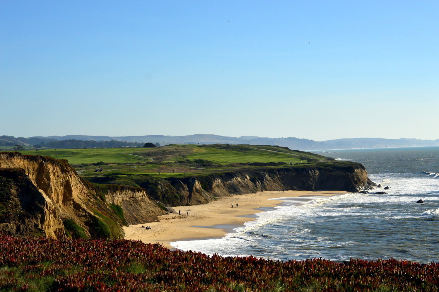 /Comin' at ya with another holiday season inspired look today, one that's far more festive and fun than the puffer coat + snow boots combo this week's forced upon most of us here in the Northeast! As you can imagine, I had some choice words (not including festive :|) to describe this oh-so-happy time of year as I battled with my ice pick this morning, so trust me when I say that this post happens to be as much therapy for me as inspiration for you! The reason being that it takes me back and away to a gorgeous California fall day at Half Moon Bay, when K and I got super lucky at the beach with the sun out in full force. For anyone visiting, I highly recommend driving up to The Ritz Carlton property like we did! As visitors, the cliff-top location gives you access to a private beach and amazing options for drinks and meals, including outdoor seating with gorgeous views (see below) of the beach and beyond. It was the perfect local afternoon getaway while in the Bay Area. :)