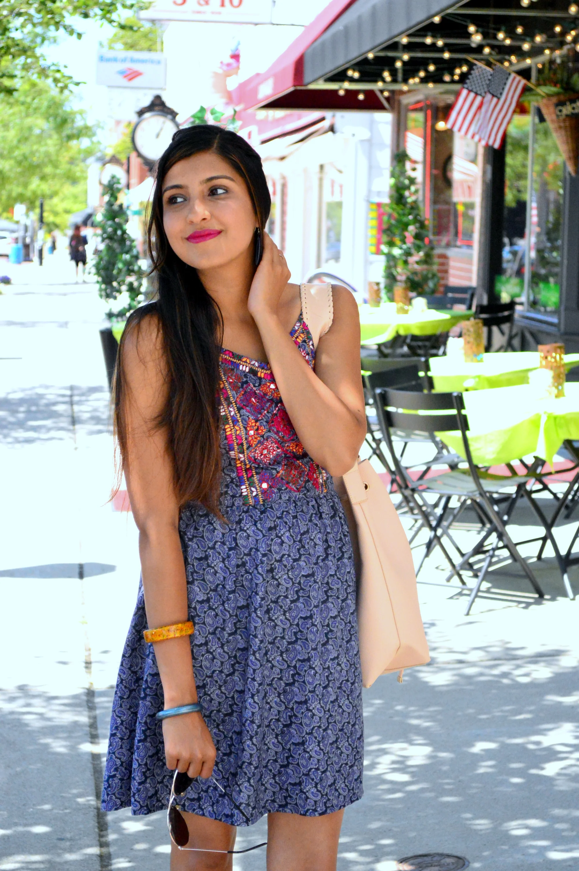 Nothing feels like summer here in Buffalo than a day trip to our charming little neighborhood town of East Aurora. We did Sunday brunch for a good three hours on the blissful patio of Elm Street Bakery, walked up quaint Main Street with a quick stop at my favorite consignment store and settled for a treat from Firefly Cupcakes to end the day. An easy sundress seemed perfect for the relaxed day we had planned, and this pretty paisley one with a richly embroidered bodice has to be one of my favorites in my closet. Pictures do no justice to the mirrored detailing and the intricate embroidered lattice .. I think I'm especially fond because it's so reminiscent of the prints and details I grew up wearing in India. :)
