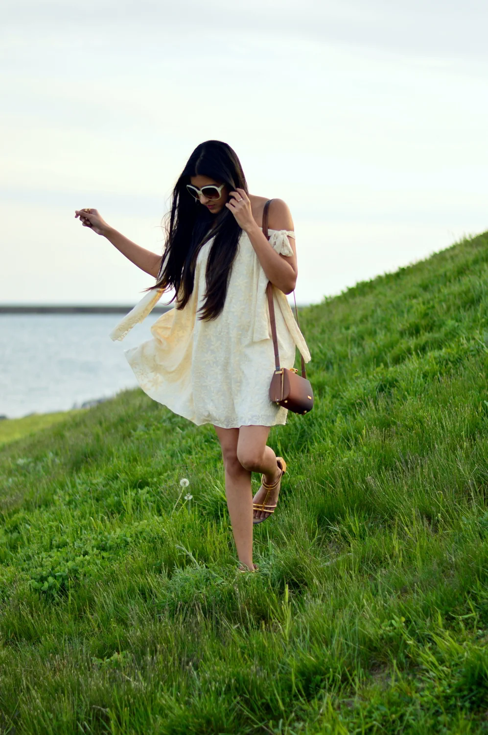 /On a day like today when the mid-week blues are coming down hard, all I have to do is think back to a few weeks ago when we had our families with us and a good day meant giggles and conversations with a view of the marina. The Buffalo Outer Harbor is one of our favorite places to be on a warm Summer day and we snapped a few quick pictures of this adorable embroidered dress as the fam bam ignored us for a bit to take in the sweeping views of Lake Erie! The tie-up sleeves, the pastel yellow, the floral self-embroidery.. can we agree that it's the perfect summer dress already? :) We wound up at the newly redone Charlie's Boat Yard for drinks after a walk along the water, and a little leopard print kimono action (along with some Long Island Iced Tea! ;)) in the sunny patio had me twirling for joy. Oh summer, how I love you!