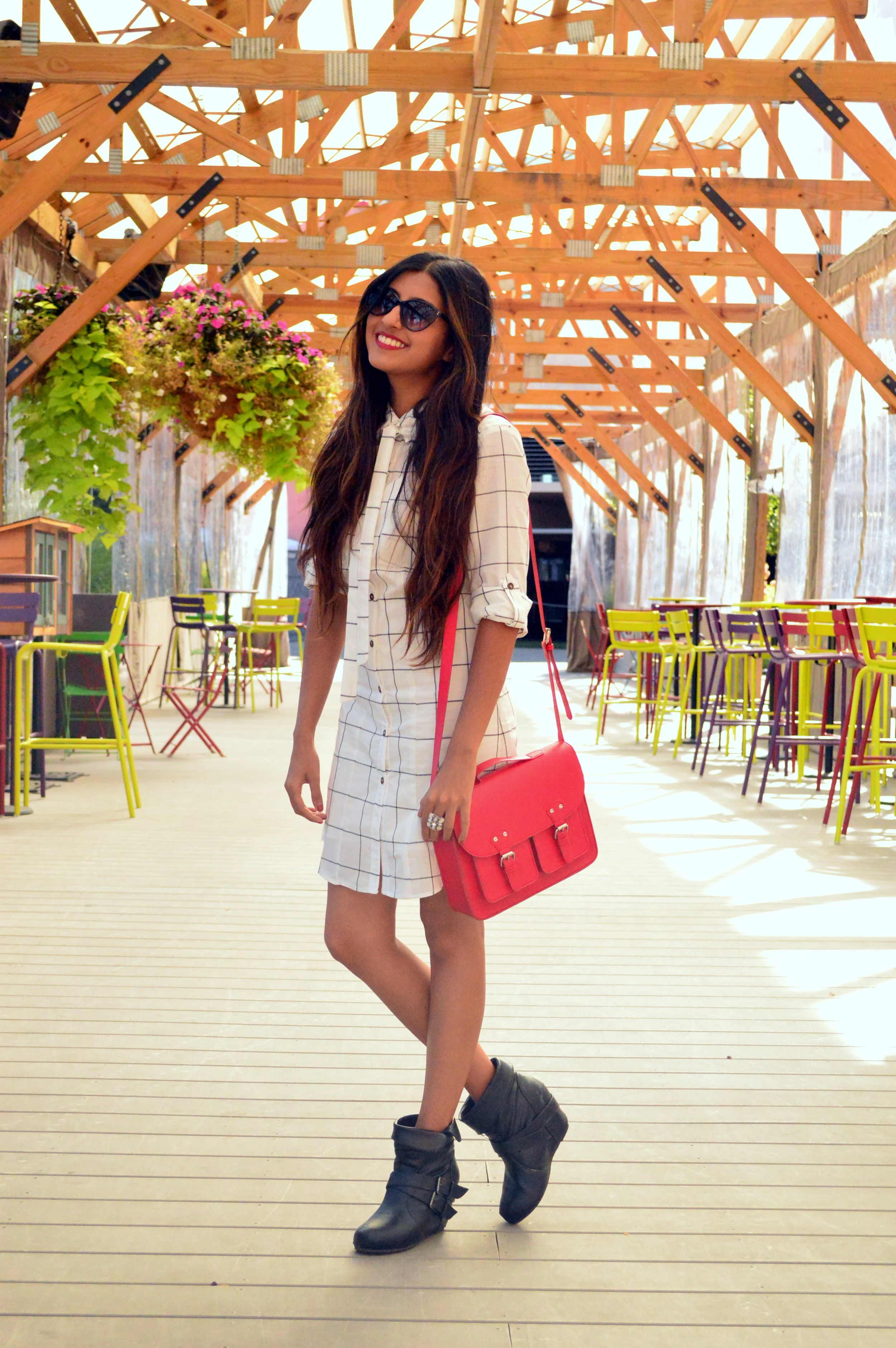 Today's outfit features a classic shirtdress with a few updates- a grid print that's so now and a waist tie/skinny scarf/necktie that I fashioned into a bow tie at the collar. Shirtdresses score high on my versatility test- wear it as a layer under sweaters and coats (like I did here), open as a maxi shirt over a basic tee and jeans/shorts combo or as is- each option offers endless outfits! I went the simple route earlier this season when we shot these photos, but in the chilly months to come, I'll be adding tights, knits and floppy hats aplenty to the same basic look.
