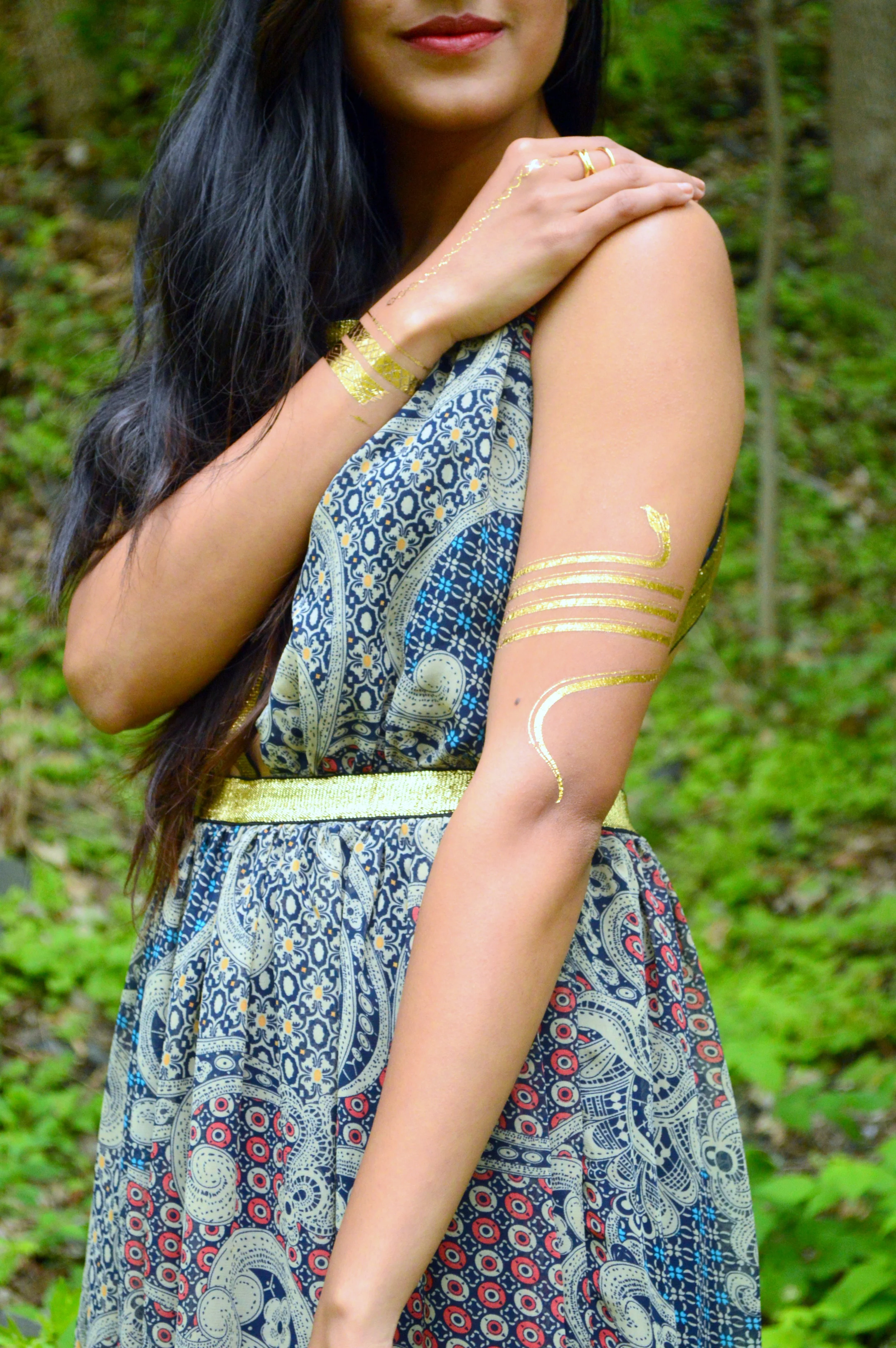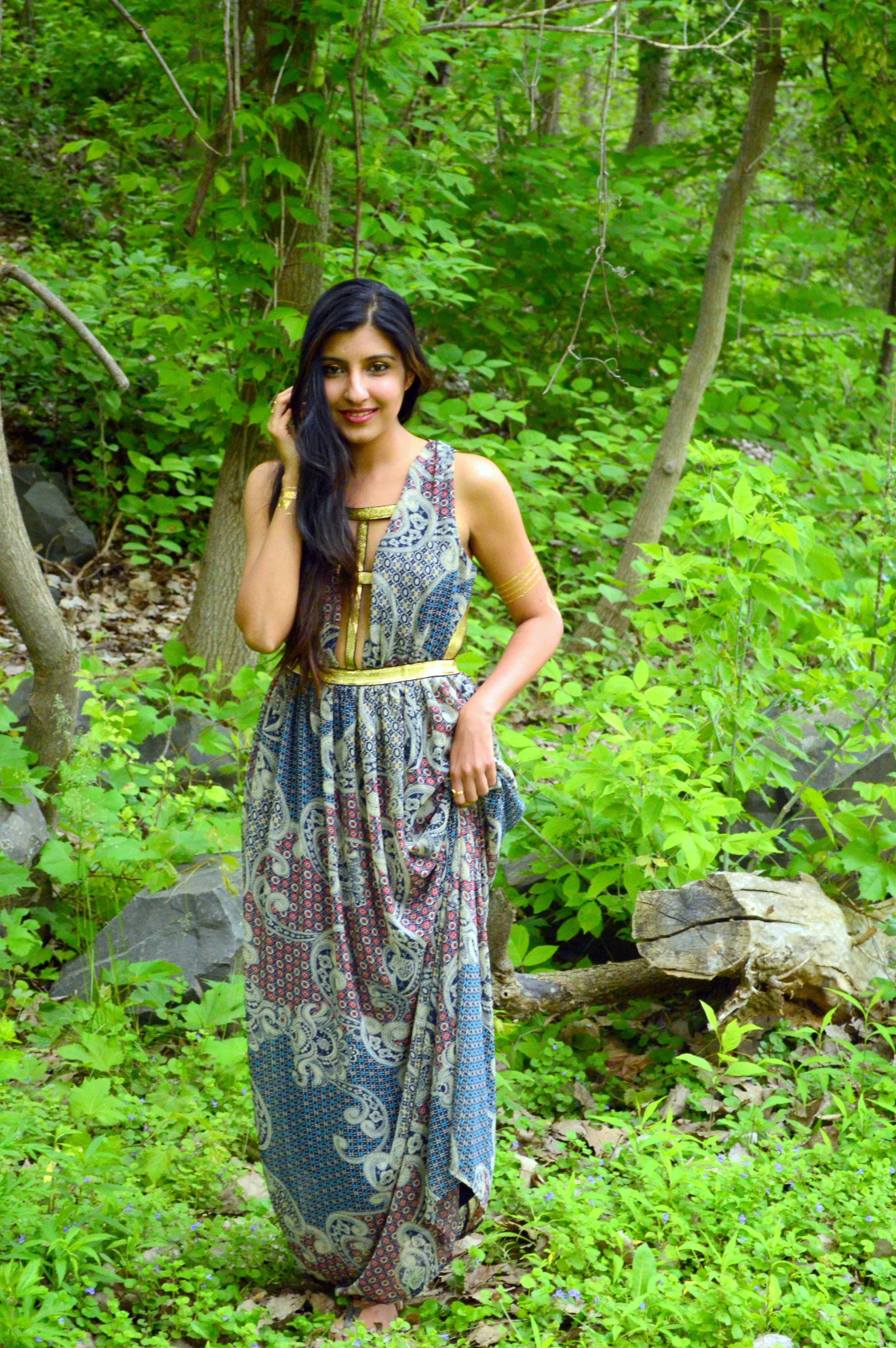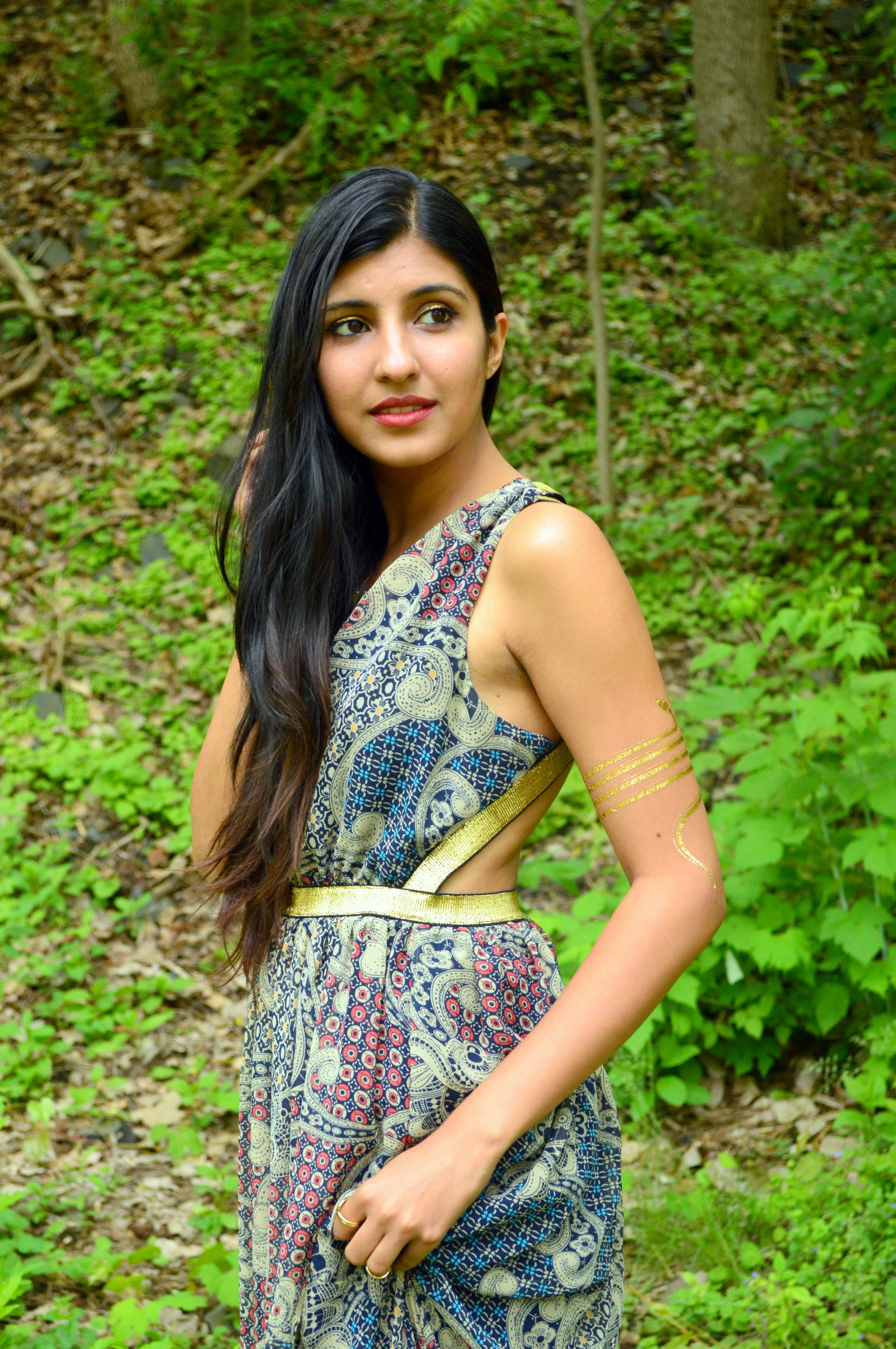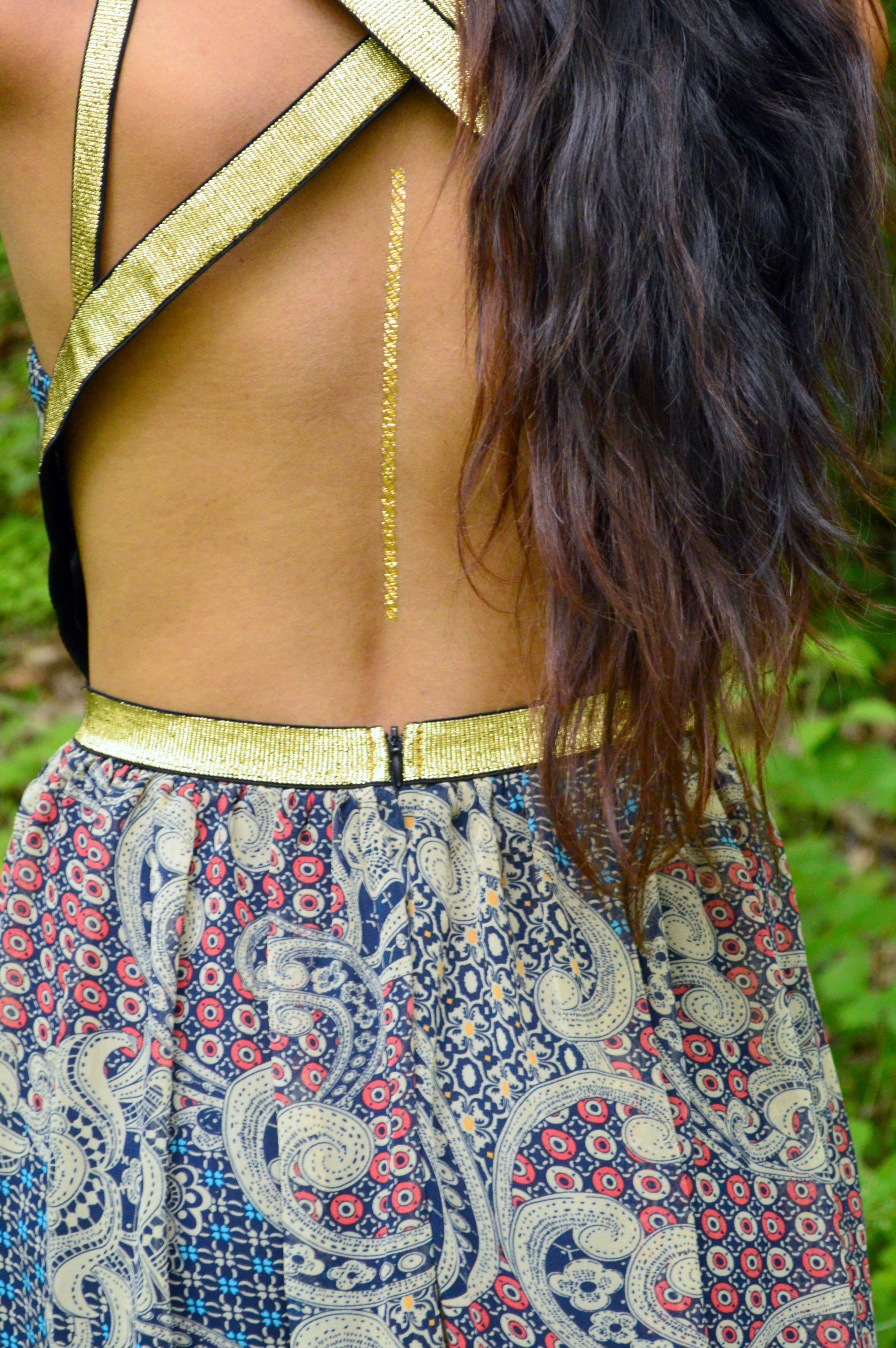 We shot this stunning A.T. Avenue maxi dress one evening in the forest, and it resulted in quite a few options for the title of this post. Jungle Princess, Wood Nymph, Forest Fairy, Snake Charmer.. you can take your pick! The rustic print of the dress combined with the gold bordered cutouts combined with the backless detail makes for such unassuming glamour and feminine power.. I almost expected a whistle and a song to summon the equivalent of squirrels and sparrows in the dark and wet rainforests of South America. Not entirely unreasonable of an expectation now, was it? ;)