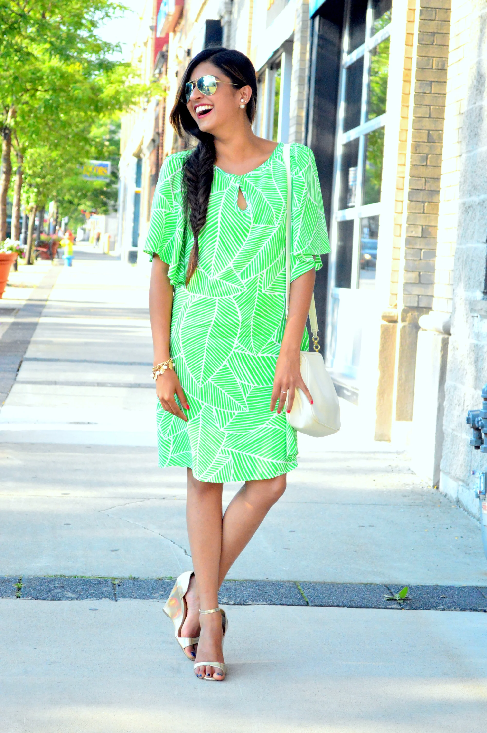I've been on the tropical print train for a while now, and it's safe to say that this darling leaf print shift dress with it's flutter sleeve and keyhole neck details has all of my heart! For some strange reason, I seem to own and wear a startlingly little amount of the color green, so this happy number has been a welcome addition to my green-deprived dress collection. I wore this look for a fun day out by Niagara Falls with friends, so simple and comfy gold and pearl accessories along with a summery fishtail braid seemed appropriate. If there's any look that feels truly like me, this would be it.. whimsical yet functional, chic yet classic, feminine yet simple. :)
