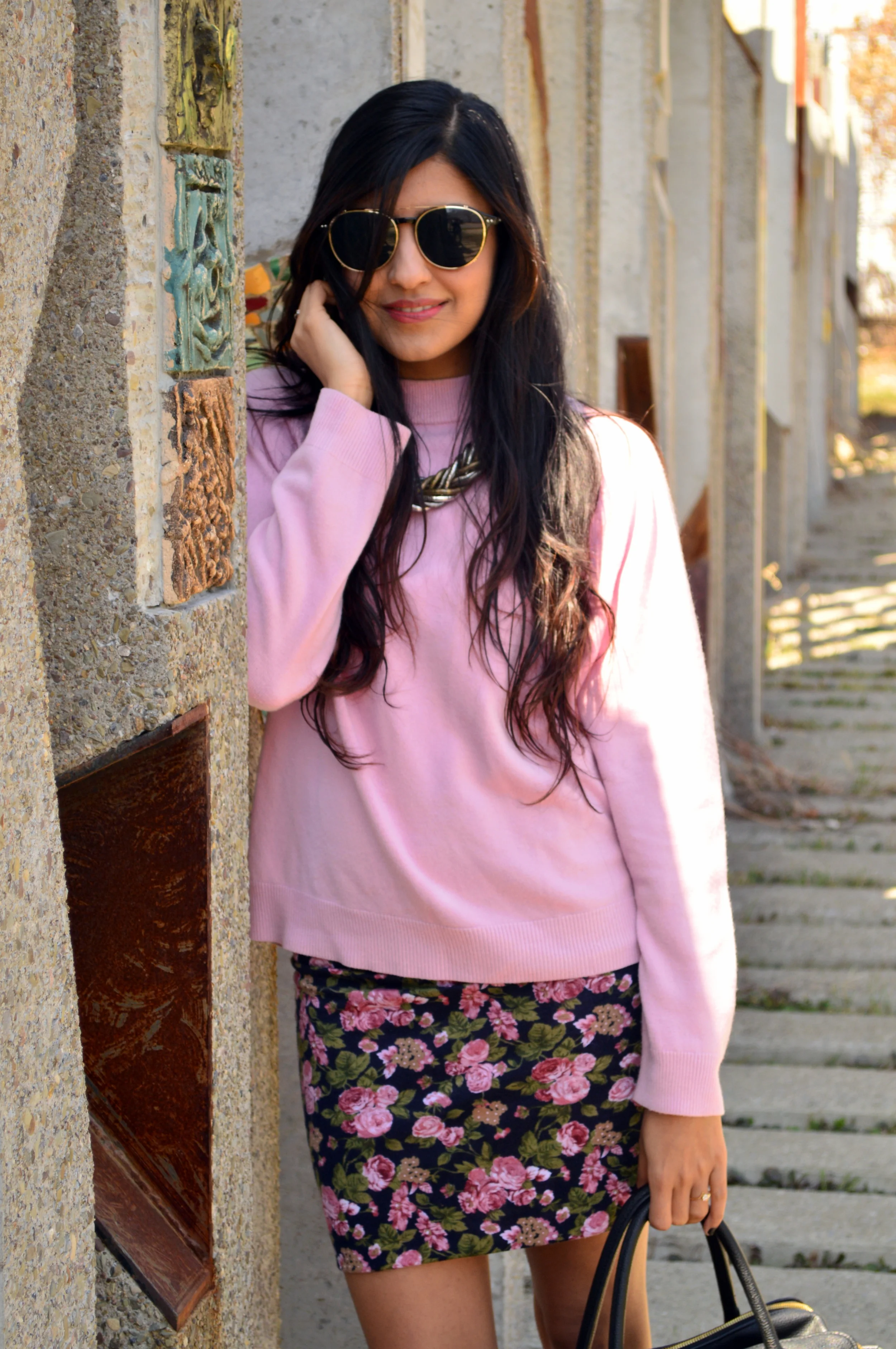 So today, along with my Cheshire cat grin comes a transitional look that's made of new and old favorites. Being on a tight budget of <$50 a month means that I'm an avid thrift shopper, and some of the most worn and versatile pieces in my closet are thrifted. Prime example is this pink turtleneck cashmere sweater I recently thrifted.. It's been just over a month and it's already gotten so much wear, thanks to it's buttery soft material and perfect Spring color. I paired it with an old floral mini skirt and comfy booties for a fun weekend day in town.