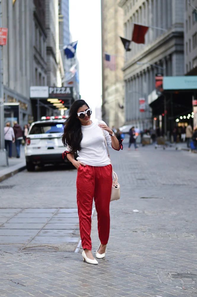 /In this recent blog post, I shared a favorite look from an early summer trip to NYC, when we stayed in Brooklyn and took in endless views of the Manhattan skyline (such as in the picture above) from across the Hudson river. In the week that followed, my parents joined us from India and we had the best time showing them all of our most loved sights and spots around the city! As always, I was live posting a lot of the looks I wore during that time on Instagram.. so many of you wanted the deets on several outfits, so I figured a recap was in order. Scroll through for a five day walk through memory lane (you'll find all the products linked below the first image!) and I hope this serves as inspo for upcoming travels to the Big Apple or elsewhere!