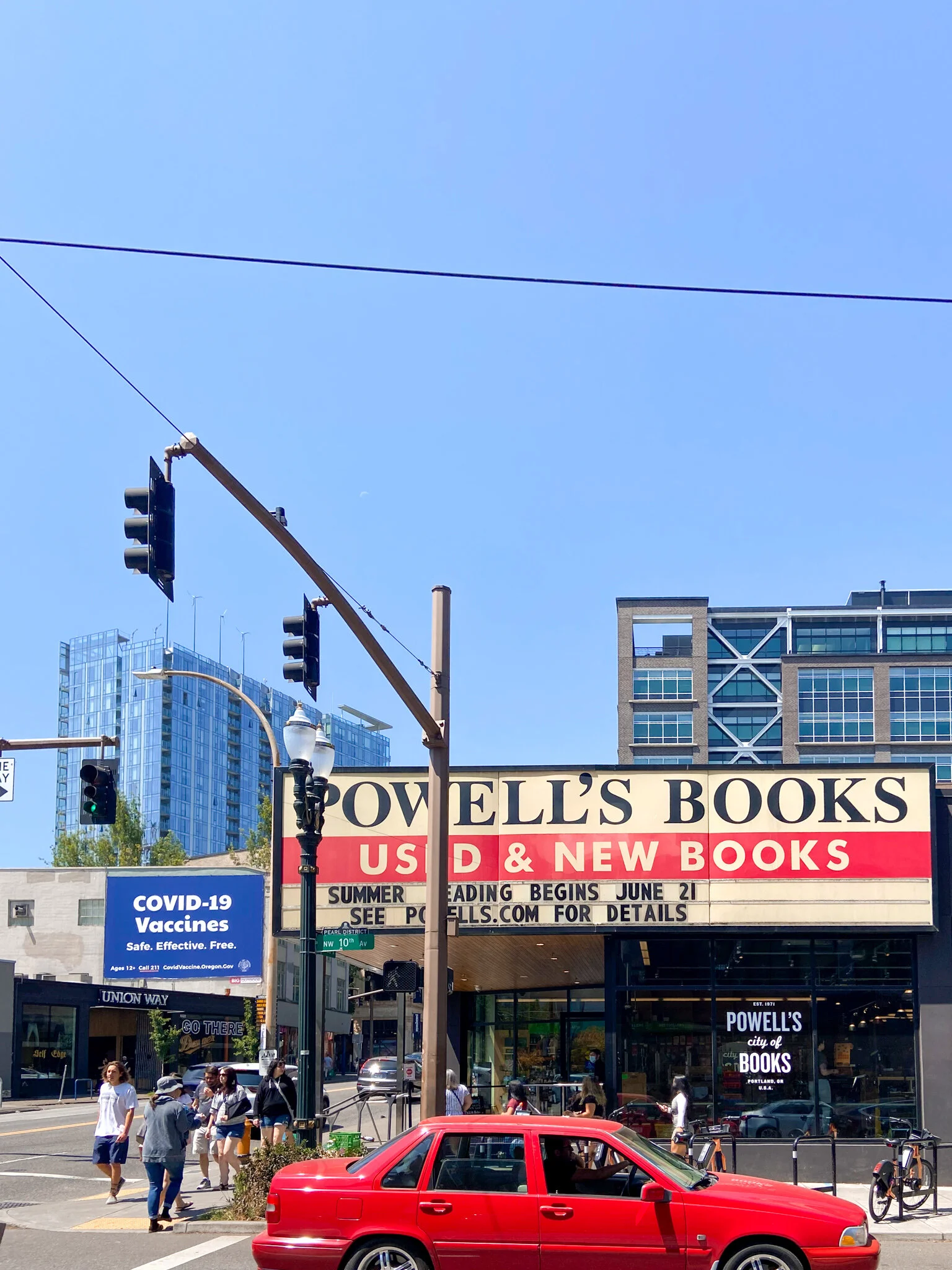 Some downtowns can be sleepy corporate silos, but don’t count downtown Portland among them. On the summer Saturday morning we spent there, it was abuzz with post-lockdown energy. The well-loved Saturday Market was on, music was playing and we toured the local favorites like tourists would- Stumptown Coffee, a Voodoo Doughnuts breakfast, an obligatory photo at the Keep Portland Weird Sign, hippie wares at the Market and people watching on a stroll along the banks of the Willamette River. Having digested the doughnuts, we then booked it to the iconic Powell’s Books, where we only barely managed to not lose ourselves for the entire day- it is a reader’s paradise! There is lots of retail shopping in the downtown area as you’d expect, but in keeping with my inherent talents, we only went to the Buffalo Exchange for thrift finds and left more than satisfied.🙃