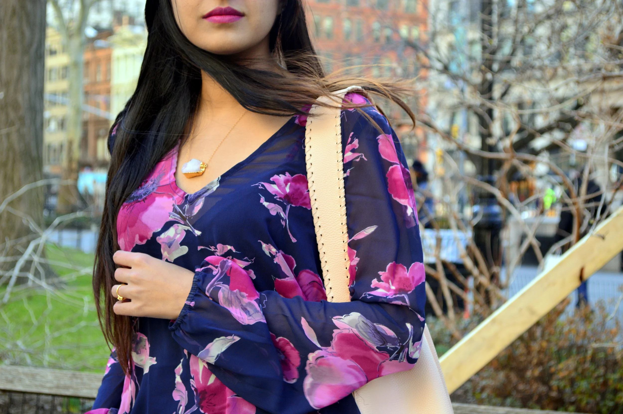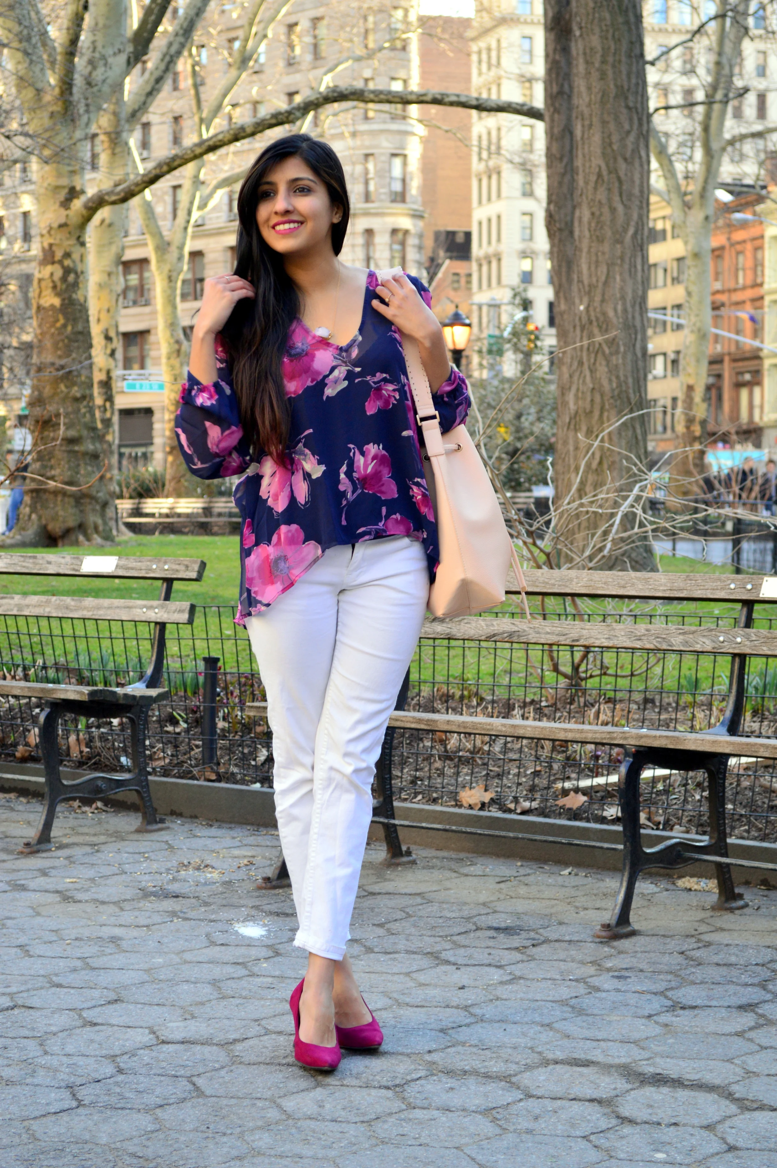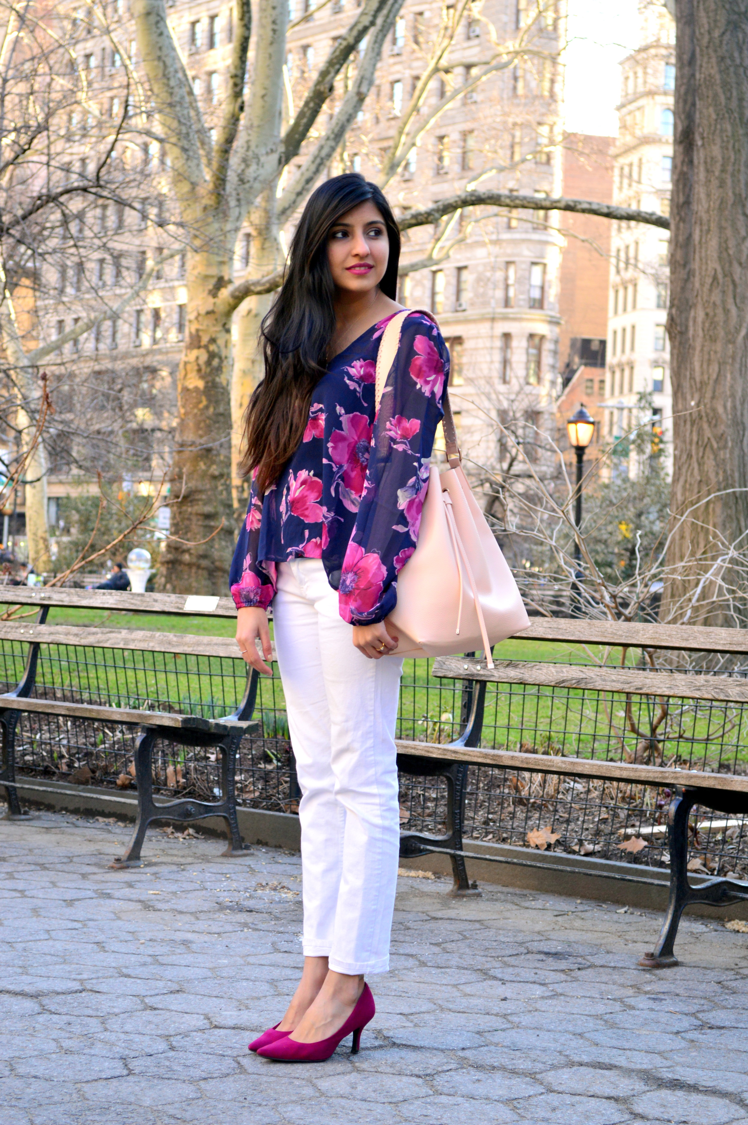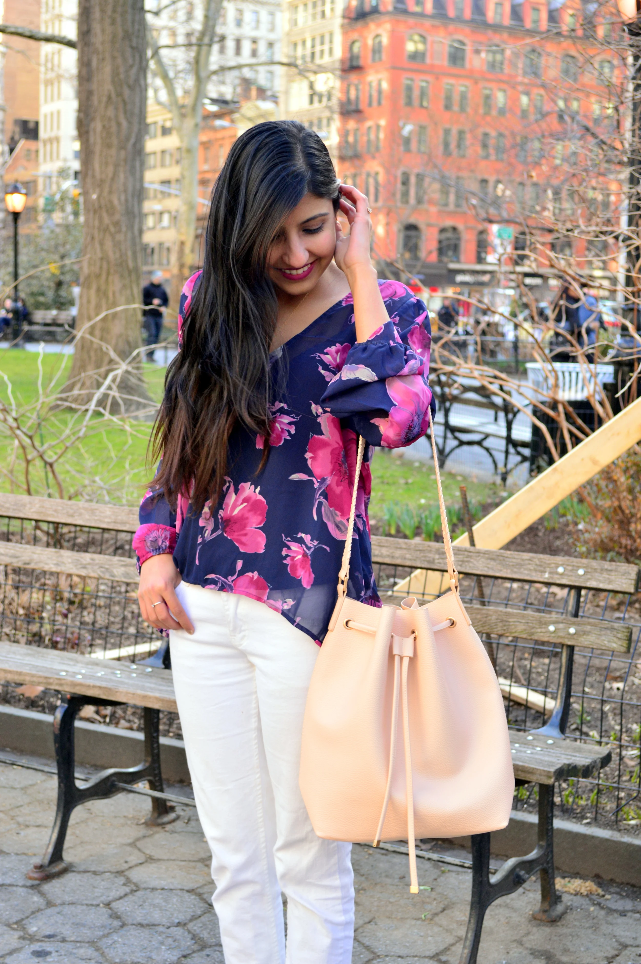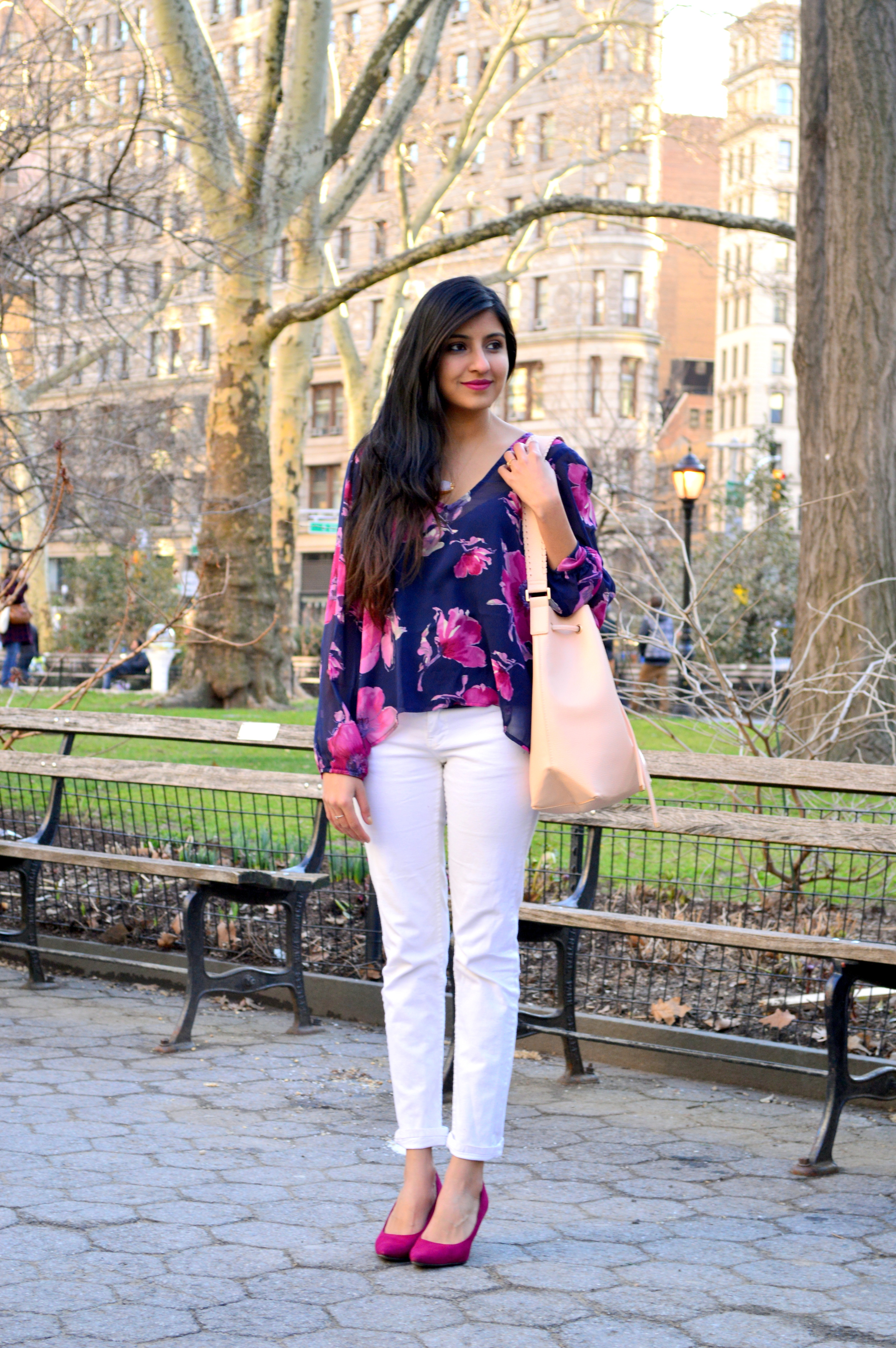This look right here could very well be called my Spring uniform. A pair of well-fitting white skinny jeans, a breezy blouse in a fun print and some utilitarian but chic accessories. Work/School outfit? Check. Run errands? Check. Date night? Check. If you're one of the wild ones that prefers a Girl's day out, it'll work for that, too. ;) Isn't this flowy floral blouse from Moddeals the perfect Spring piece?! If you're unfamiliar with my love for Moddeals, all you have to do is check it out to know why.. on-trend clothes and accessories for under $15 each.. I mean, you all know that's my kind of budget! I'm so excited to be teaming up with Moddeals to bring you some fun Spring/Summer outfit inspiration in the weeks to come.. keep your eyes peeled! :)