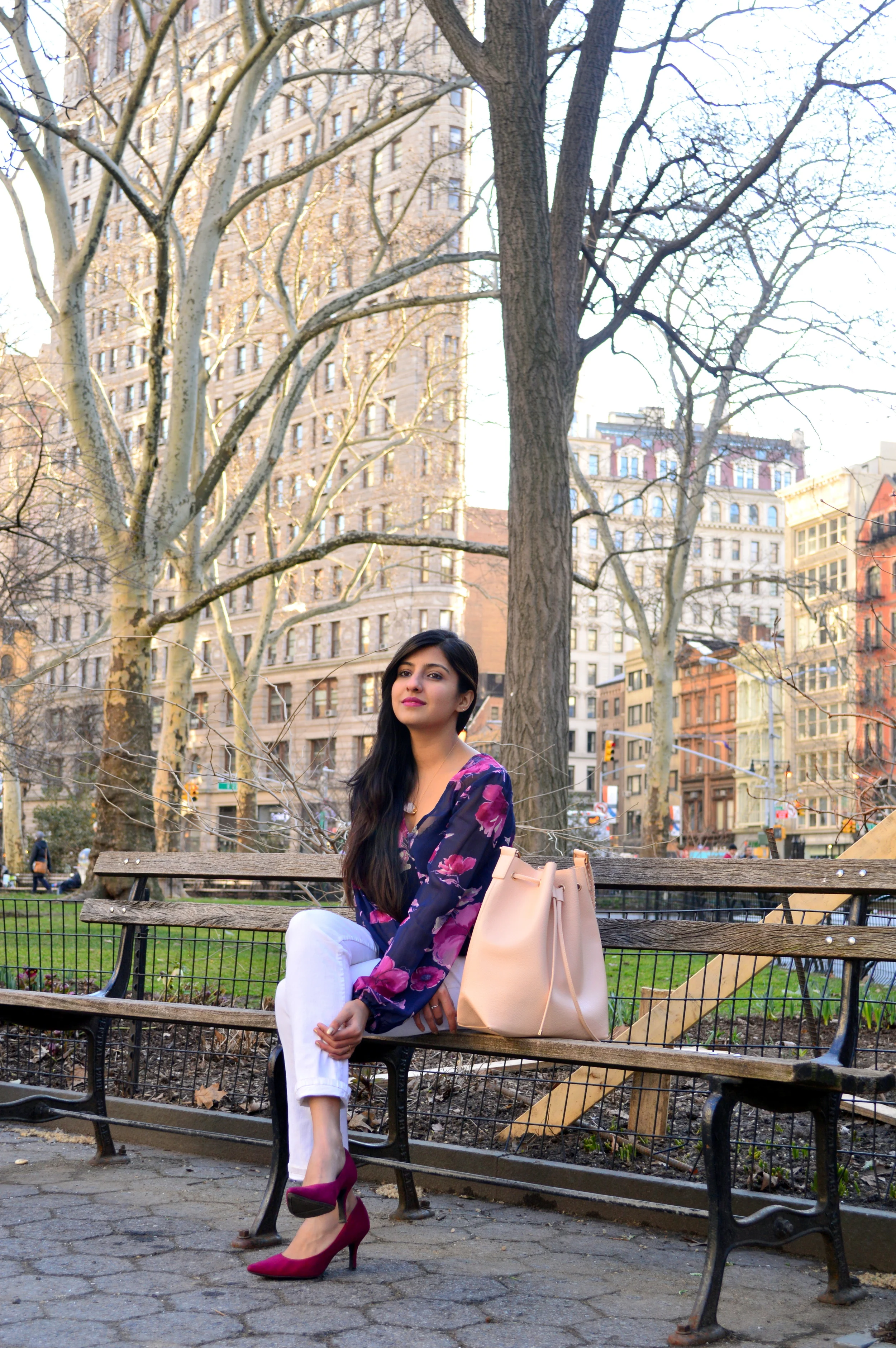 /Multitasking is not my strong point, you guys. I'm writing this post between frantic tax form filling (Procrastination is totally my strong point, as you can tell. Also, Turbo Tax may be mankind's best gift to itself.) and staring dreamily into the sunshine-y sky (What? That's a legit evening activity if you haven't seen the sun in six months!), so you know what's up if there's words that you don't recognize along the way. But what I'm trying to do despite my scatterbrained self is share this outfit that I wore on the second day of our trip to NYC. We shot these photos right opposite my favorite piece of architecture in NYC- the Flatiron Building. Consider me twice as happy when I not only get to share my love for fashion, but also my love of travel with you. :)