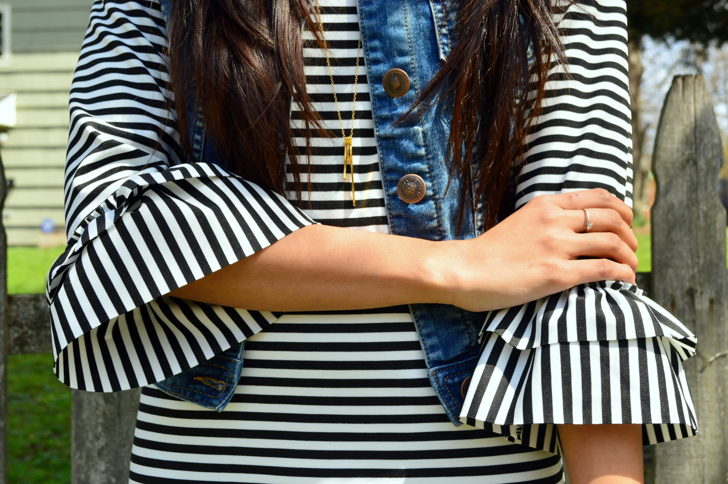 It's no secret that I love a good striped number, thanks to the evergreen pattern being universally flattering and timeless in it's versatility and class. While my striped shift dress is a summer staple, I'm always looking to own variations of the basic design for a unique take on the well loved print. No surprise then that this striped midi dress caught me eye almost immediately on the Dainty Jewell's website! I absolutely adore the fun ruffled sleeve detail, and although the true midi length of the dress was slightly daunting to my short-legged self, I was pleasantly surprised to find that I felt neither stunted nor drowned by the print reaching well below my knees. If you like this piece, you'll love the rest of the selection at Dainty Jewell's.. there's a wide range of modest, classic designs that'll have you spoilt for choice. :)