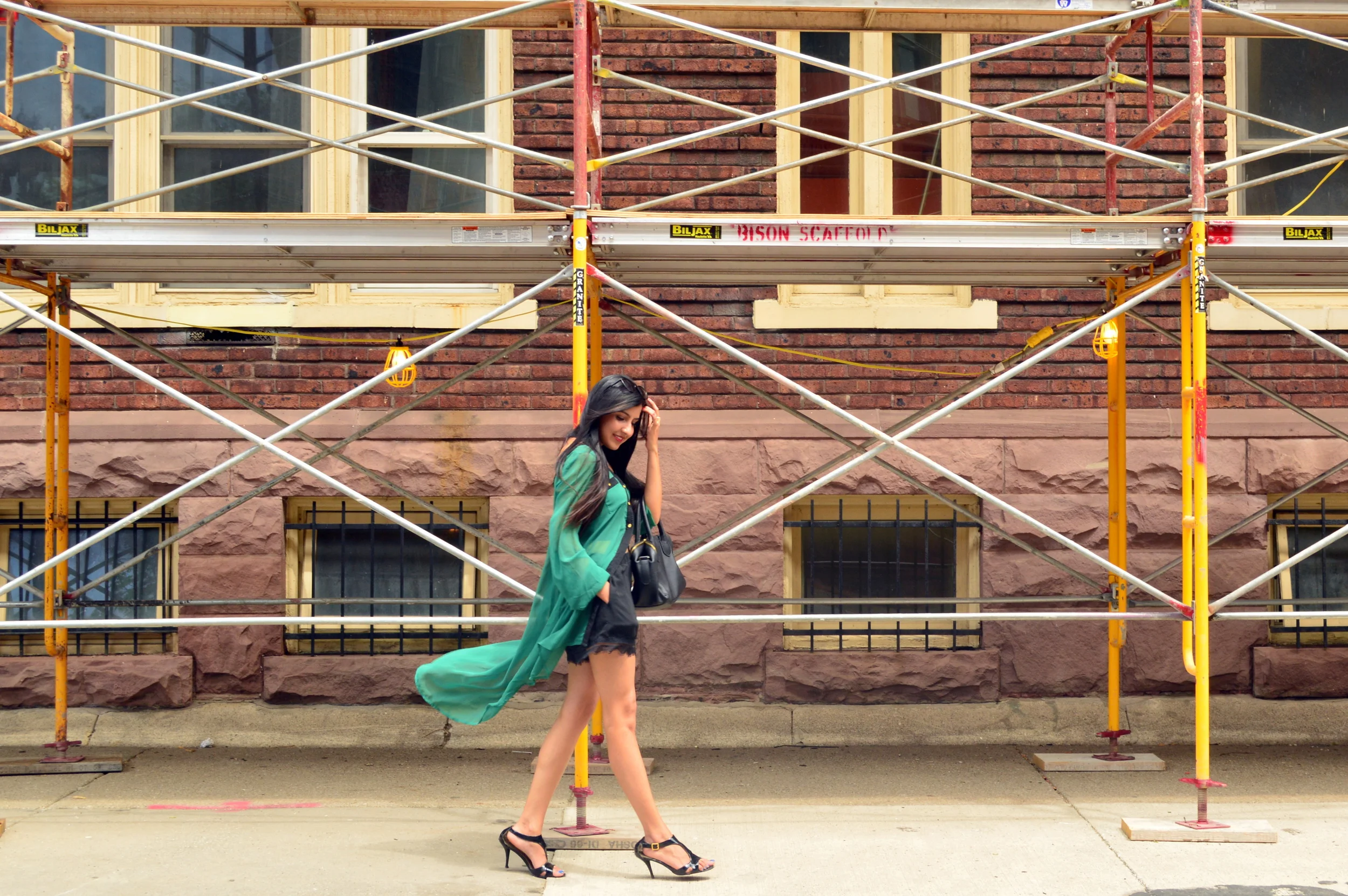 /Another Friday, another weekend appropriate outfit here on Ms. MS! Because, let's be honest, it's almost time for Sunday brunch and it's crunch time. I say this because the outfit in today's post was born solely from one of my usual Friday post-dinner unwinding sessions spent scouring the internet for weekend outfit inspiration/50%-of-my-reason-to-go-to-brunch-in-the-first-place. Okay, scratch that because I'm 200% about maximum food consumption on the weekend, but hey, what to wear comes a close second! So as I was saying, my perusal of the latest fashion trends the other night resulted in my repeated gawking at the same single street style rage- the maxi top. In cruder terms, the dress-over-pants trend. I have to admit, being Indian and oh-so familiar with the tunic over pants concept (traditionally called a kurta or salwar), I kind of felt slow headed for not having thought of this brilliant adaptation sooner. :| But a little inspiration and a thorough rummage through my closet later, I felt somewhat better.. not sure if K could say the same after the mess that was the bedroom, though! ;) Not wanting to spend money on a passing trend, I dug out this old high-low shirtdress and paired it with high-waisted shorts for a budget friendly and summery version of the trend. Shopping in my own closet and a colorful construction grid on our way to brunch.. this post sure had me happy that Sunday!