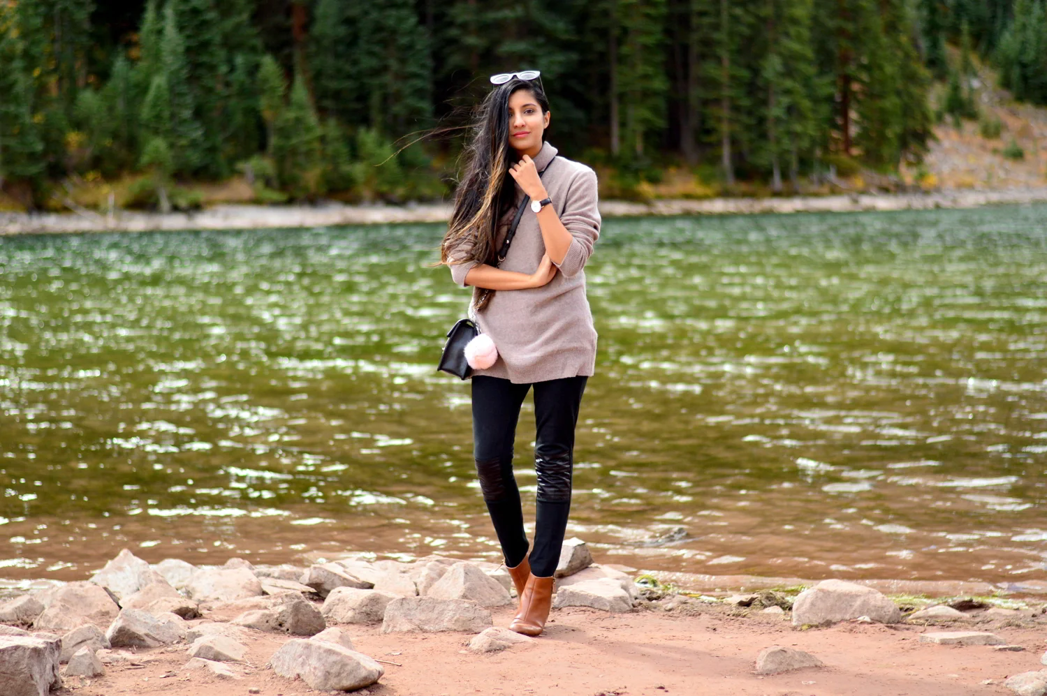 I wore this cozy turtleneck sweater and these moto leggings together and as separates multiple times over the trip and since, so I can really attest to their comfort and warmth! I hate nothing more than being chilly and uneasy during fall and winter activities, and this look took me from day to night effortlessly, making for the perfect day spent marooned at Maroon Lake. :)