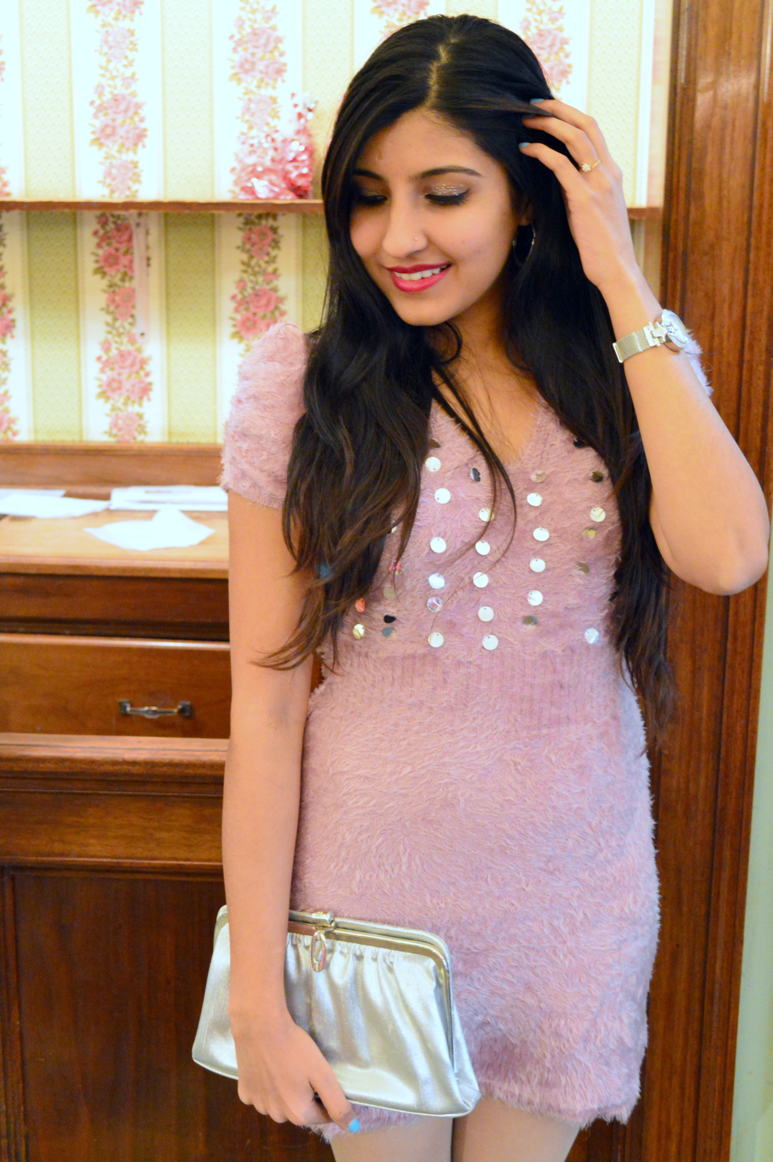 Today's date night Valentine's Day look brings my fuzzy knits obsession full circle, you guys, because I'm wearing a fuzzy sweater dress. I literally fell out of my chair when I saw this cozy number over on Sincerely Sweet Boutique, and the petite-friendly waist cinch, feminine ruffled sleeves and party-perfect embellishments were just the cherries on top!