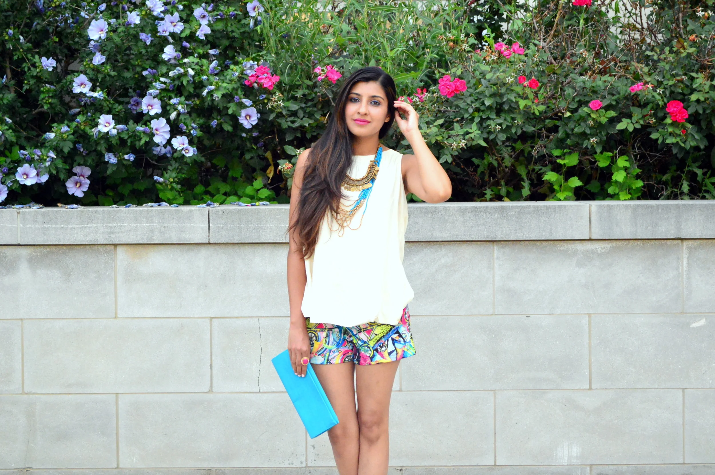 /Friyayyyy, am I right?! This was one of those weeks, you guys. I like to call them Emu weeks, because I literally feel like one of those unfortunate birds... flapping my wings at the rate of 225 flaps/minute to realize that my feet never left the ground. :| Sooo busy but soooo unproductive. Ya feel me? I intend to make up for wasted time by being very efficient this weekend and crossing everything off of my to-do list i.e. lots of ice cream, picnics in the sunshine and dreamy sunsets by the lake. More productive than I need to be, I know. ;) If you happen to be on the same grind, you'll have no problem spotting me in the crowds, 'cos I'll be wearing this pastel blouse + printed shorts combo all weekend long.