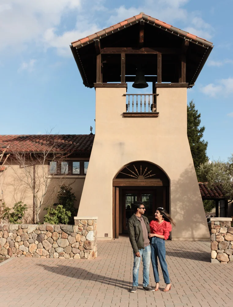 The second winery we visited on this trip was St. Francis Winery in Santa Rosa- same but so different. Same as in beautiful grounds and great wine, different as in think Mission-style Spanish architecture… so lovely. :) Spanish tiles, bell tower, wooden doors, you know I’m bringing my inner salsa queen to the party! This statement sleeved fiery red top is a $5 steal, so scroll down below if you’d like. #kaching